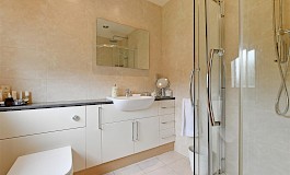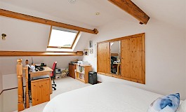 To the first floor are four good-sized double bedrooms, the master of which has an en-suite shower room and a range of fitted wardrobe units. There is also a very well proportioned and stylish family bathroom with large shower cubicle, separate bath, WC, wash hand basin and fitted vanity unit. Via the fourth smaller bedroom is a staircase which rises to the fifth double bedroom with its gable end window taking in some stunning views and the Velux over looking the fabulous garden and scenery beyond. This room also benefits further eaves storage space and has further access into the roof space of the rest of the house, which is ripe for further possible extension, subject to consents.