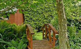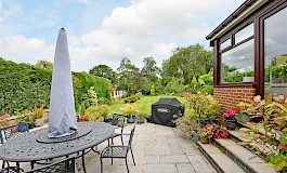 The rear garden is mainly laid to lawn and has been well stocked with mature trees and planting with patio, seating area and a picturesque ornamental bridge sitting astride a small natural water feature.