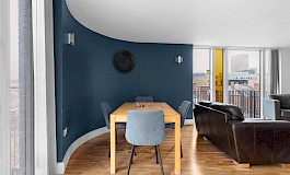 - Good sized open plan living space with excellent views across the city