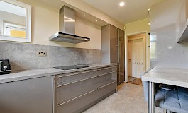 - Separate modern Karl Benz kitchen with integrated appliances and breakfast bar