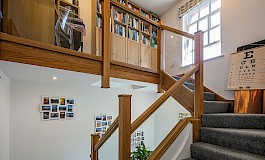 Entering the property on the first floor there is a spacious entrance hall which opens to a mezzanine study area and has access to a WC/Cloakroom which incorporates a utility cupboard with washer/dryer facilities. It then leads to a spectacular open plan kitchen/dining/living room which has vaulted ceilings, original ironwork, a circular feature window and French doors to a private terrace which has an artificial grass area. The kitchen has a range of high gloss units with Quartz worktops, an island unit and integrated appliances which includes an induction hob, two Bosch ovens, fridge/freezer, and dishwasher. On the ground floor there is a master bedroom which has fitted wardrobes and an ensuite shower room, two further double bedrooms with one having fitted wardrobes, and a well-appointed bathroom that has a white suite with a shower over the bath. The property further benefits from a private single garage, two allocated parking spaces, a storage unit, and use of the well-maintained communal gardens. SORRY NO PETS OR SMOKERS.