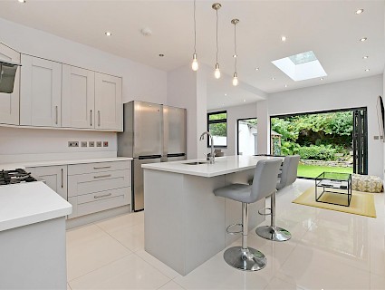 - Open plan kitchen, diner & family room onto enclosed rear garden