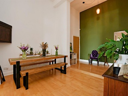 - Open plan living/dining room with high period ceilings