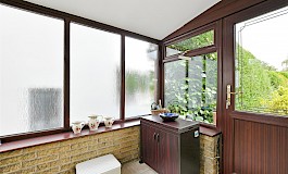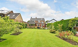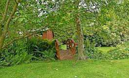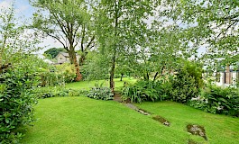 The rear garden is mainly laid to lawn and has been well stocked with mature trees and planting with patio, seating area and a picturesque ornamental bridge sitting astride a small natural water feature.