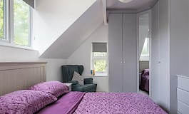 The upper hallway also has the benefit of large built-in storage which is always essential.