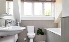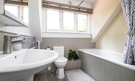 The well-appointed bathroom with its white suite adds to the convenience of this lovely home. The well-maintained communal gardens offer a serene outdoor space to unwind amidst the leafy, tree-lined surroundings. For those with a vehicle, the property includes the added benefit of a single garage, which provides the off-street parking.