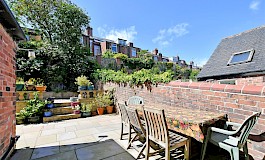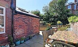 The rear garden offers a good degree of privacy, is fully enclosed and low maintenance with tiered flagged patios areas.