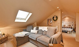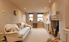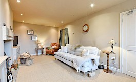 Open plan from the kitchen is a cosy snug/lounge, again with a feature fireplace. The layout is thoughtfully designed to create a warm and welcoming atmosphere, making it easy to envisage family gatherings and social occasions.