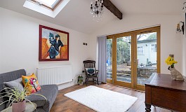 Boasting a painted fitted kitchen with good storage which leads to a formal dining space, with original inset stone shelving and storage. From here through to the main lounge with feature fireplace, beamed ceiling and wooden flooring, providing ample space for both relaxation and entertaining. Then through to the carefully considered extension which offers a versatile bright and airy space that can be tailored to suit your lifestyle. Whether you envision a cosy sitting room, home office or even a guest bedroom, the natural light floods through the windows and doors which open to the enclosed low maintenance garden which also has a wooden summerhouse with power.