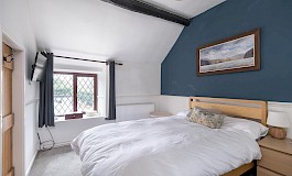 To the first floor the ample master double bedroom has a range of fitted storage and good proportions. Then the second single bedroom and the beautifully fitted bathroom with its tasteful and traditional style.