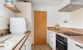 As you enter the apartment, there is an ample hallway, with useful built-in storage that also houses the heating system. The bright and airy lounge/diner provides a welcoming space for relaxation and entertaining. The large windows allow natural light to flood the room, creating a bright and inviting atmosphere. The modern kitchen is equipped with essential appliances and a good amount of fitted storage and work surfaces, making it a joy to prepare meals and enjoy culinary adventures.